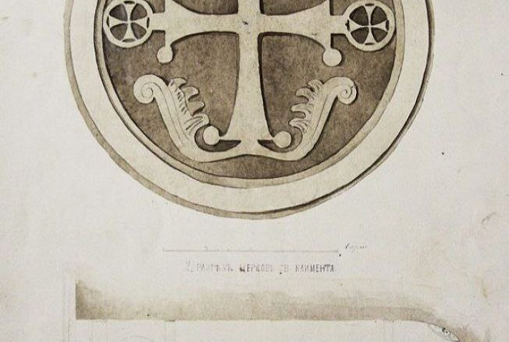 • Процветший крест, Инкерман, Церковь св. Климента (базилика св. Геогрия). Рисунок Дмитрия Михайловича Струкова, археолога и реставратор, 1867 год. Процветшими называют кресты, украшенные растительными мотивами, символизирующими Древо Жизни и добрый плод, иллюстрацию слов Писания (слова Христа о лозе и ветвях). Он был вырублен на полукупольном потолке апсиды. До наших дней не сохранился. 🌿