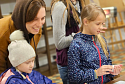 На занятии дети и родители вместе украшали вареные яйца, выбирая цветочные мотивы и создавая один большой пасхальный сад. 🌼